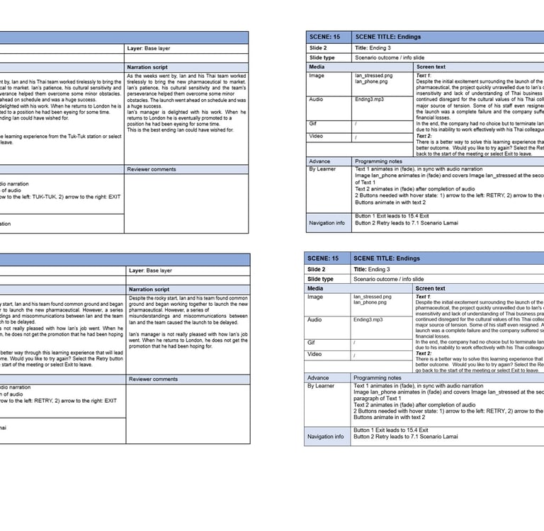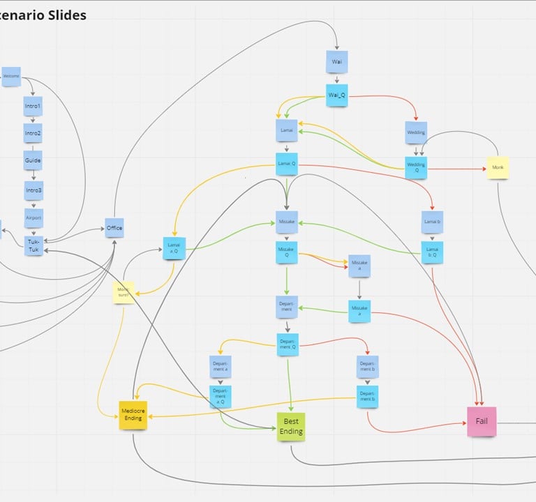 To support the action mapping process, I also interviewed a German manager with expatriate experience in Bangkok. This provided first-hand insights into common challenges, cultural misunderstandings, and potential consequences of missteps. Despite minor cultural differences between the UK and Germany, the interview proved highly valuable for shaping both the learning design and the project storyline.